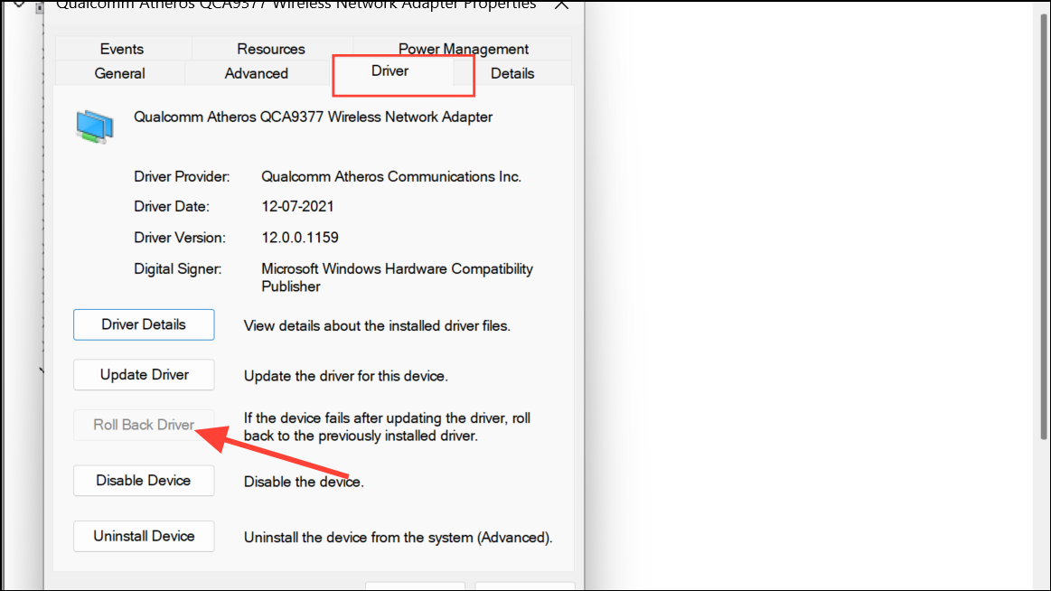 Крок 2:Перейти доВодійВкладка та натиснітьВідкрийте драйверякщо вони доступні. Цей варіант перевстановлює попередню версію, яка, можливо, працювала, не викликаючи синіх екранів.
